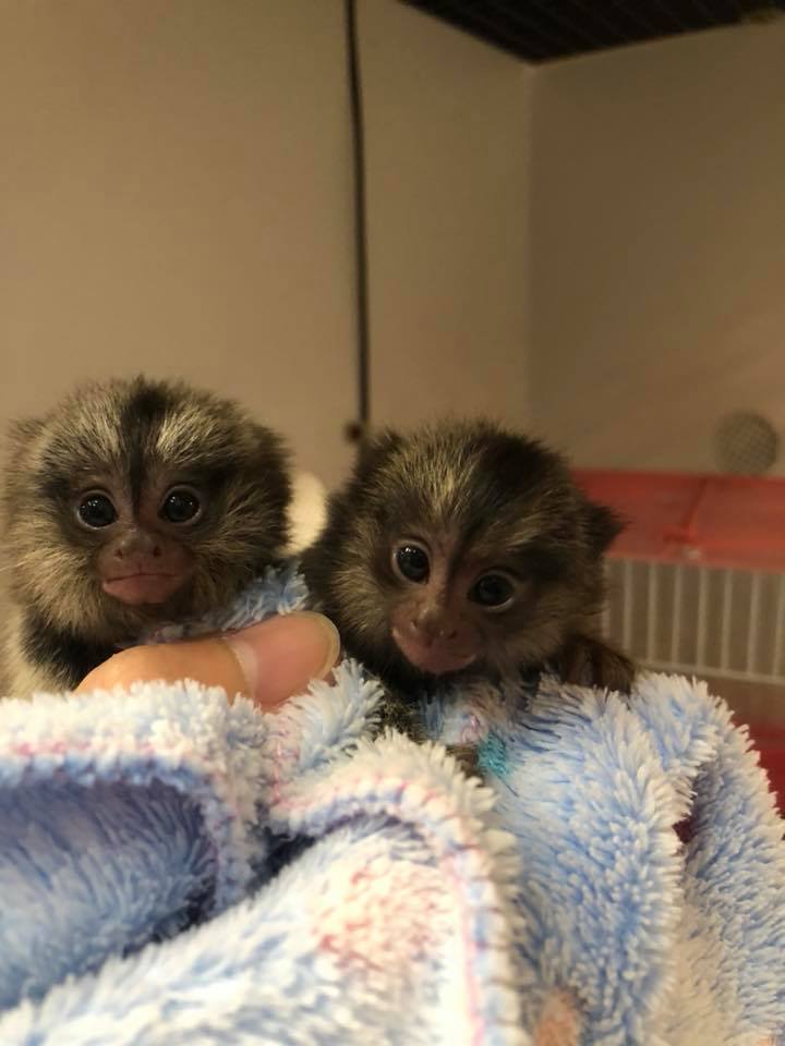 Marmoset Monkey is a type of monkey that has a gray or black body, a long tail, and a white head with black ears. They are medium in size and spend a great deal of their time in the trees.